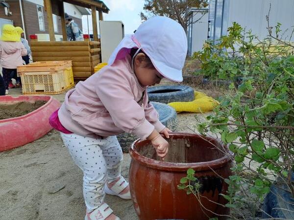 お外は楽しいことがいっぱい 外に出ると思い思いに好きな遊びを楽しんでいます。どろんこ遊びや砂遊びをしながら感触を味わっています。 おいしいごはん作るよ 登るの得意 ジャンプ楽しい 砂掘ろうかな どんぶらこ〜 砂遊びだいすき 2025/06/12