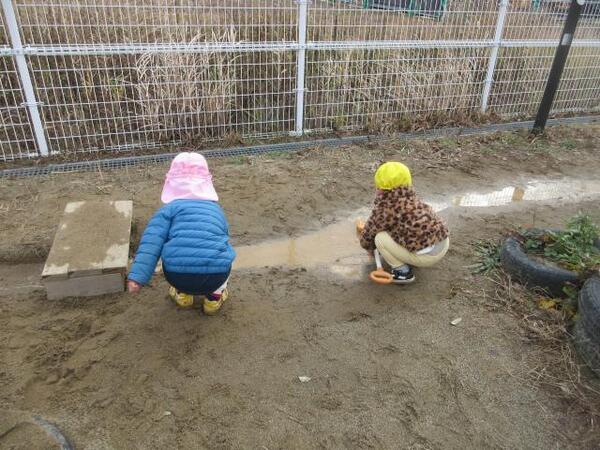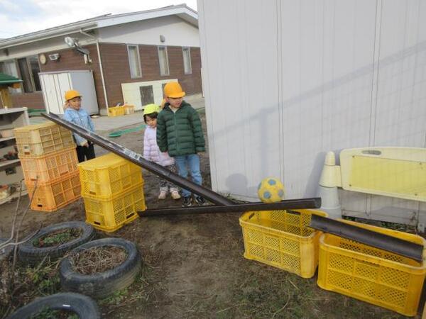 園庭の好きな遊び 子どもたちは水が大好き。園庭のどこに水があるのかみんなよく知っています!いつも水を流して遊んでいた雨どいを使って、ピタゴラスイッチを作ろうと奮闘していた子どもたち。いろいろ考えて最後は大成功でした。 お水ここにあるんだよね お水あるかなー 水あった! ピタゴラスイッチになるかな どうっやたらいいかな ピタゴラスイッチ大成功 2025/11/28